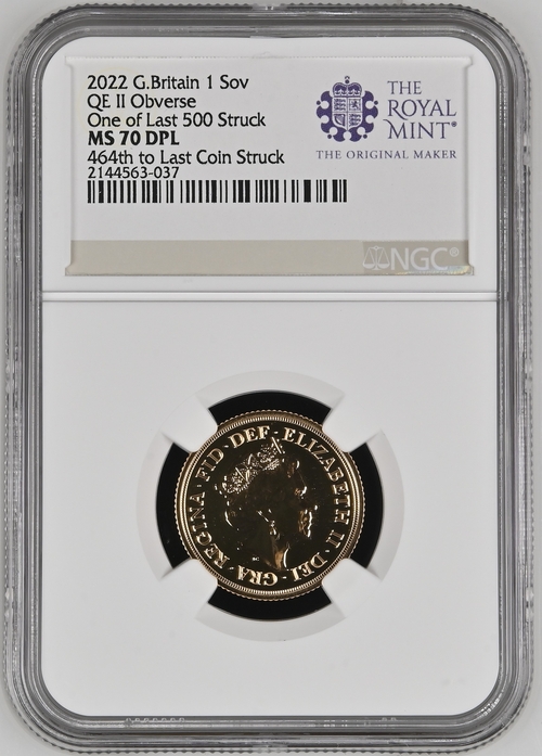 - 2022 G.Britain QE II Obverse One of Last 500 Struck 1SOV