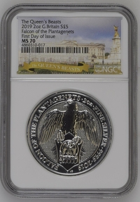 - 2019 2oz G.Britain Falcon of the Plantagenet First Day of Issue S5PND