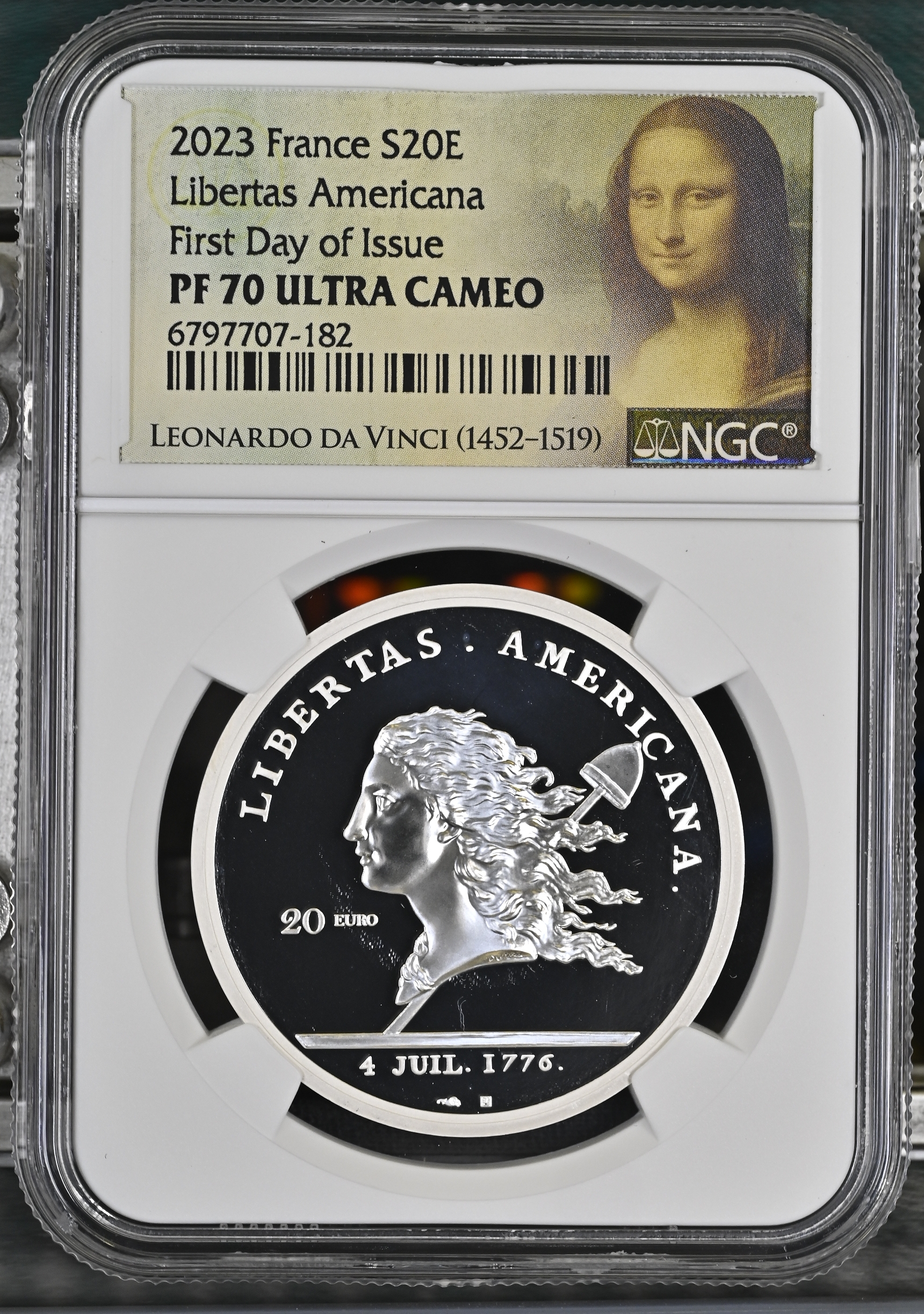 白斑須知:許多現代金銀幣會形成白斑,或者被錢幣界常常俗稱為「牛奶色斑點」。錢幣經NGC評級後,白斑仍然產生的情況是不在NGC保障條款下的。因為這些白斑的出現無法預測,並非因NGC之錯而發生。了解更多>