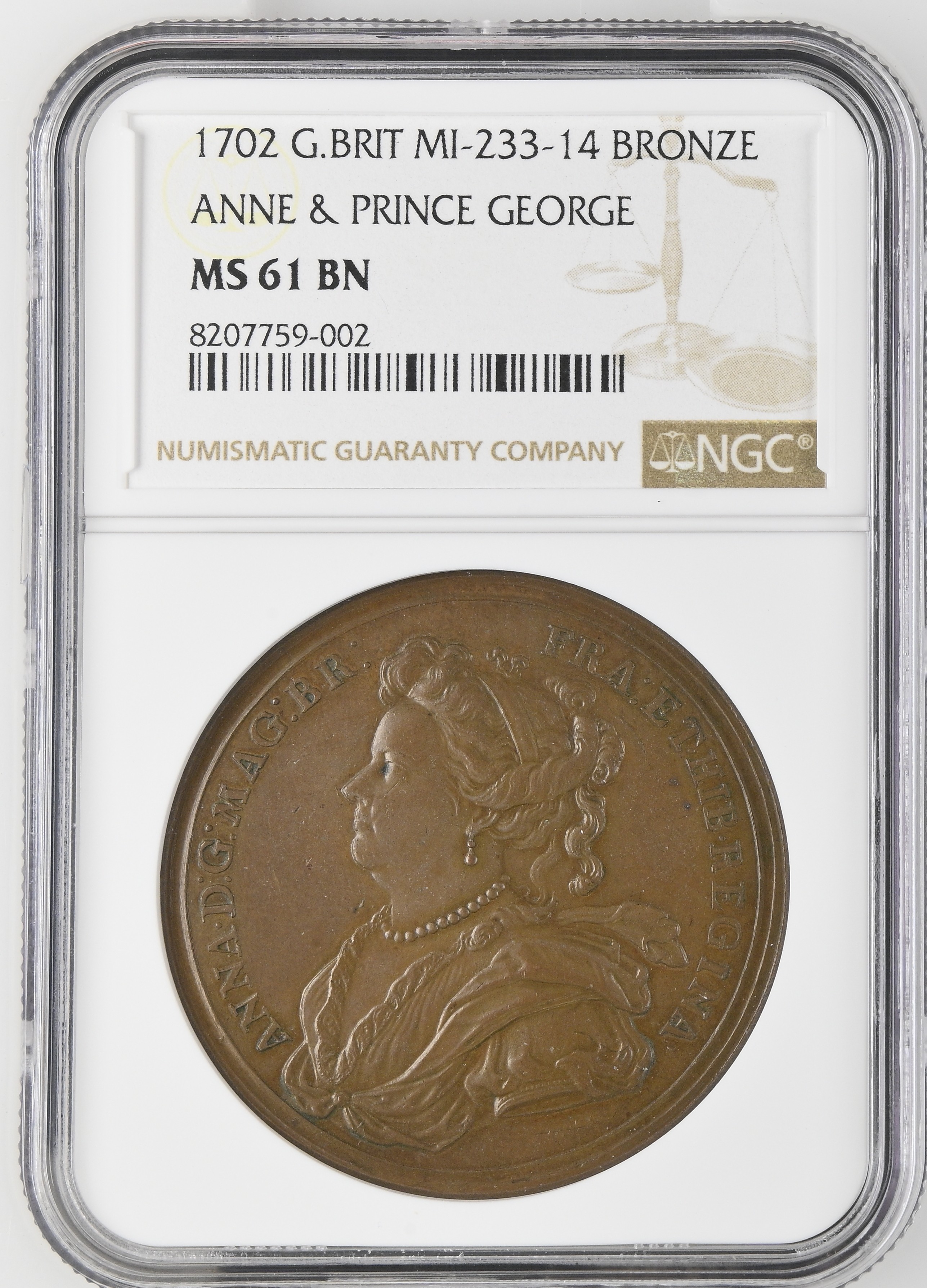 - 1702 G.BRIT MI-233-14 ANNE & PRINCE GEORGE BRONZE