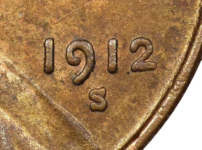 1912年S版林肯美分算是較稀有的版別,其稀有程度雖不及前述三版,但保留原廠狀態的低分該版別硬幣售價亦有數百美元。NGC近期收到一枚硬幣,據稱為1912年S版林肯美分真品。不過這枚硬幣破綻百出,顯然為假。