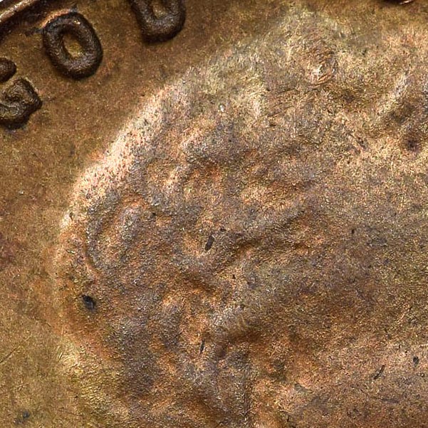 這枚硬幣的重量雖然達標,但顏色與真品卻存在偏差。真品用的是95%銅與錫、鋅的合金,而此幣是由100%的純銅鑄造。除顏色外,幣面細節處理亦相當粗糙,尤其是林肯的頭髮部分。真幣的髮絲雕刻有明暗曲直的變化,做工精細;而這枚幣卻模糊不清,完全看不出精細的雕工。