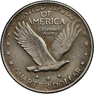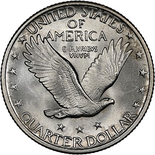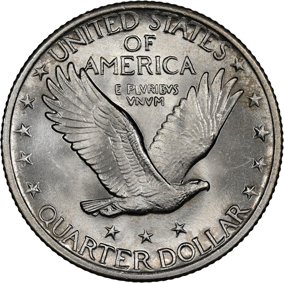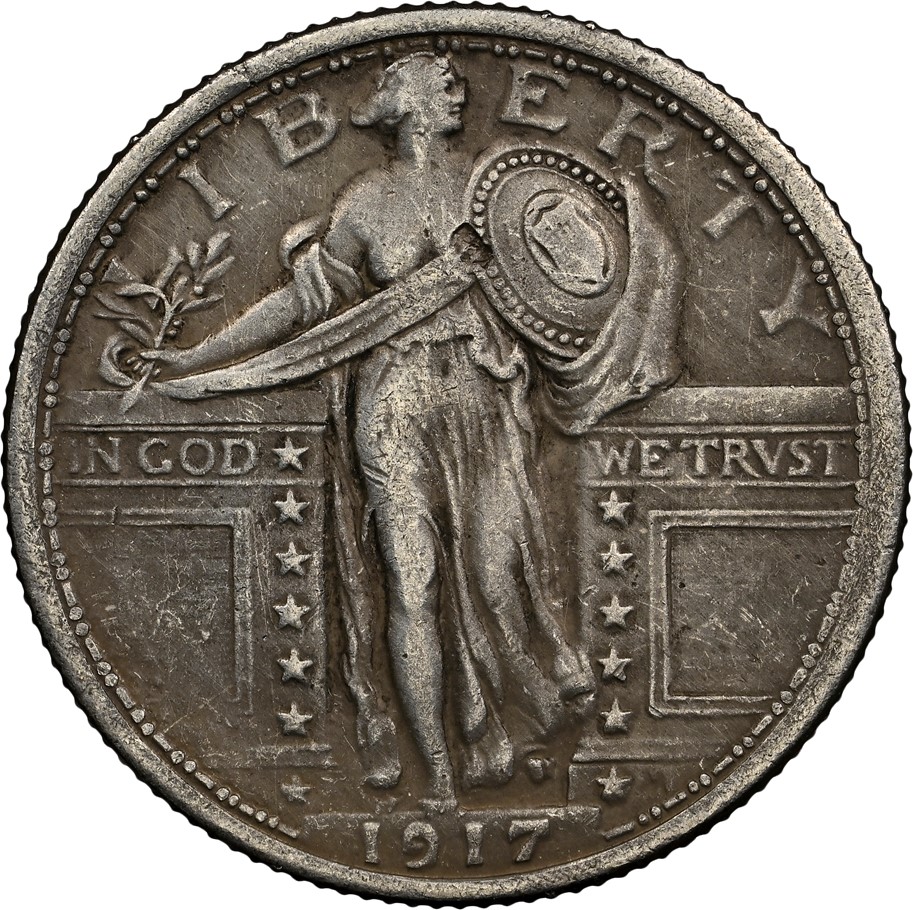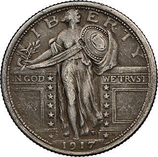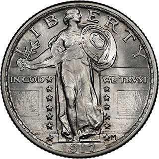 站姿自由女神25美分硬幣首次發行於1916年,該年份亦是藏家在集齊全套收藏的過程中需著重關注市場價格的關鍵年份。當年發行的此類別硬幣僅由費城造幣廠一家鑄造。進入1917年,站姿自由女神25美分則改為在費城、丹佛和三藩市三地鑄造(代表丹佛的“D”和代表三藩市的“S”造幣廠標記位於硬幣正面年份左側的星星旁),且呈現出更為豐富的版別變化。1917年鑄造的此類別硬幣有Type 1(相對精細)與Type 2(相對粗糙)兩種設計樣式,並且在三地的造幣廠均有鑄造。