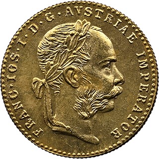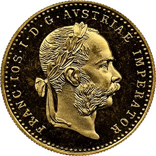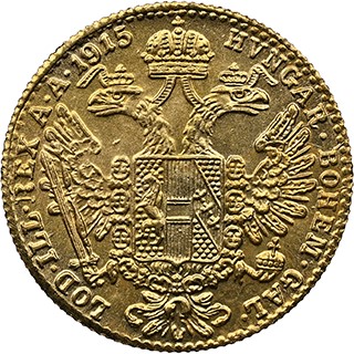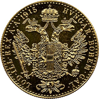 百餘年來,奧地利始終在鑄造一類已在歷史中定格的經典錢幣——1915年杜卡特金幣。金幣正面為奧匈帝國皇帝弗朗茨·約瑟夫一世(Franz Joseph I)肖像,其於1916年一戰期間辭世。二戰期間,該幣的鑄造一度中斷,直至二十世紀五十年代才重新恢復。時至今日,奧地利鑄幣廠仍在持續發行此類後鑄幣。