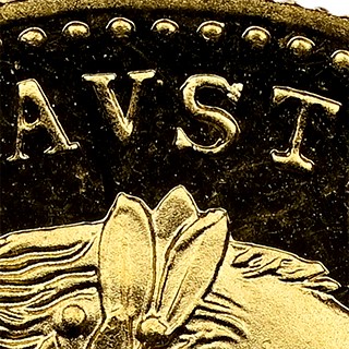 除此之外,贗品的幣面存在明顯氣孔瑕疵,文字邊緣臃腫發脹、銳度明顯不足。對比下方兩張圖片中的「AVST」字樣,二者差異一目了然。
