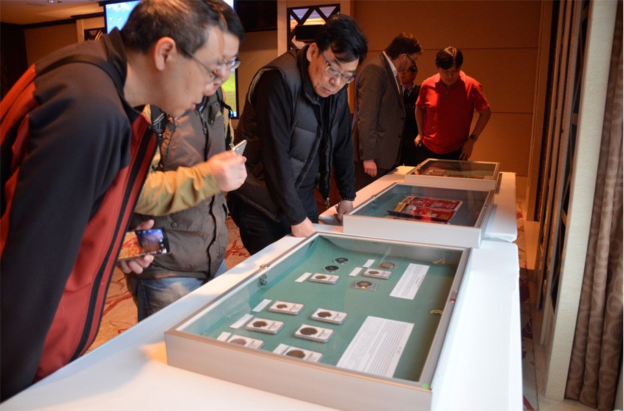 工作會午宴前後,出席人士還參觀了第三屆中國錢幣精品展。藏品來自德國奧託拜赫公司、新加坡收藏家基金和NC收藏,精品展的錢幣均是非常珍罕的中國機制幣和紙鈔,均由NGC或PMG評級。精品展亮點包括:1897年浙江省造光緒元寶庫平三錢六分銀質樣幣,NGC MS 63;1916年袁世凱像飛龍L. Giorgi簽字版拾圓金幣,NGC MS 63,已知兩枚中最佳品相;1929年孫中山背地球壹圓銀質樣幣,NGC MS 65,最高評分;1951年中國人民銀行第一版人民幣壹萬圓“牧馬圖”(序列號:I II III1837965) ,PMG AU 50,最高評分;1917年黎元洪像中華民國五族共和紀念銅章,NGC AU 55 BN, 非常稀少;1920年倪嗣沖像安武軍紀念鎏金銅章,NGC MS 64,非常稀少;1922年武昌造幣廠郭紀念銅章,NGC AU 58 BN,可能是孤品。