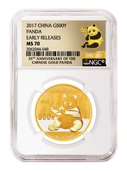NGC的熊貓金幣發行35週年的認證標籤上,印有原身1982年設計中的熊貓圖像的鏡像。只需按特定的指引提交,便可選用於2017年的熊貓金幣。請查看以下的「附加指引」。