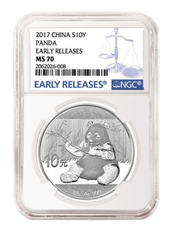 除此之外,符合資格的2017年熊貓金銀幣將可選用深受大眾喜愛的NGC「早期發行」專稱。如欲獲得這專稱,必須按特定的指引提交