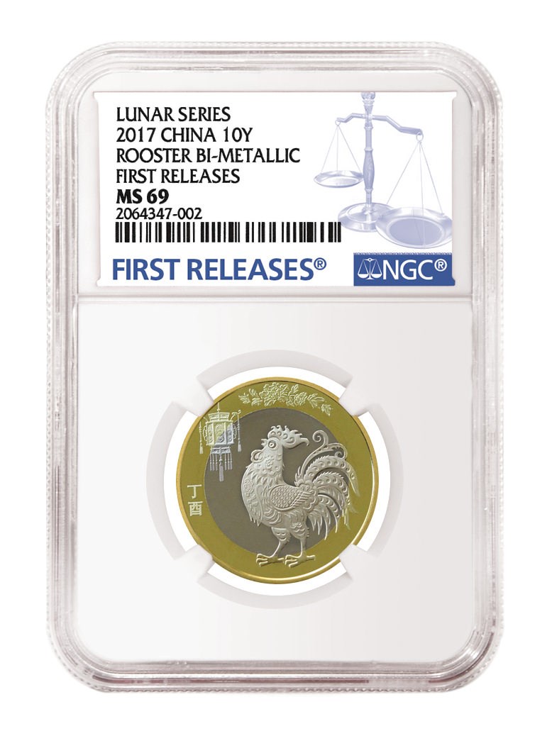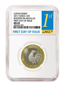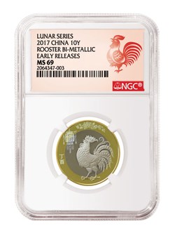 NGC將為備受期待的2017丁酉雞年賀歲雙色銅合金10元面值紀念幣推出特別標識和標籤。該紀念幣預定於2017年1月4日面向公眾發行,這也是雙色銅合金系列紀念幣第三次發行。該系列最早發行的是2015年的羊年雙色銅合金10元面值紀念幣。